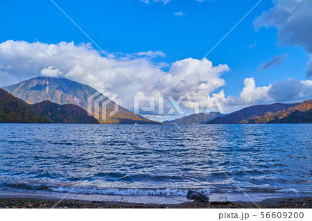 秋の日光中禅寺湖と千手ヶ浜(せんじゅがはま)から見た男体山