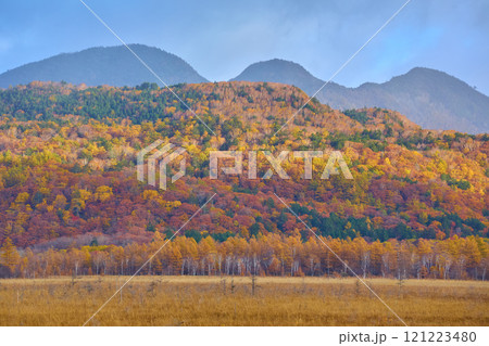 秋の奥日光(戦場ヶ原)自然研究路より三岳(みつがだけ)方面を見る