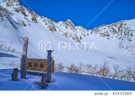 冬の長野県駒ヶ根市の千畳敷カールと宝剣岳方面を千畳敷駅から見る