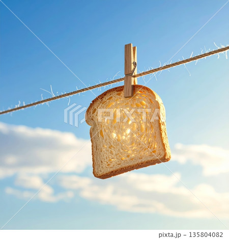 Slice of Bread Clipped to Clothesline Against Clear Sky