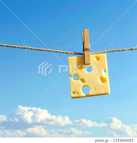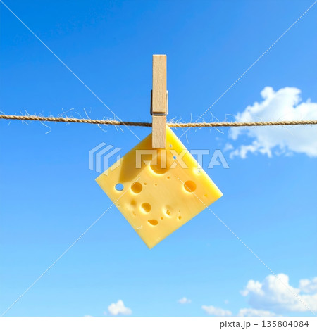 Slice of Cheese Clipped to Clothesline Against Clear Sky
