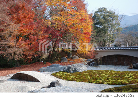 Karesansui style garden 枯山水の日本庭園の紅葉風景,秋の京都旅行のイメージ