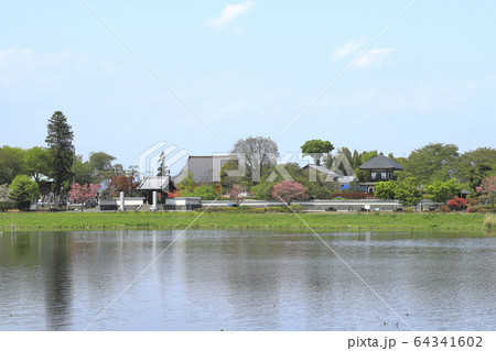 館林市つつじが岡公園 城沼と善長寺の鐘楼堂
