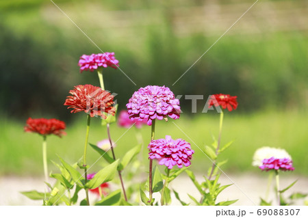色とりどりの百日草の花