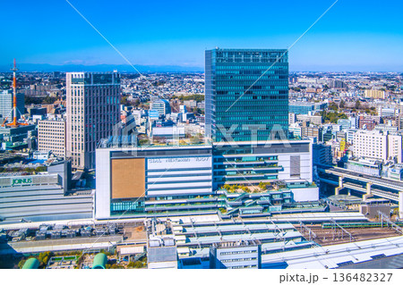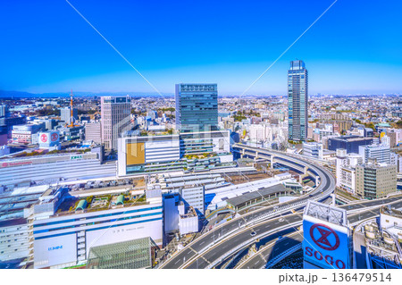 日本の横浜都市景観 横浜駅みなみ東口側。横浜駅東口地下駐車場などを望む