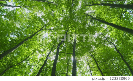 Deciduous Trees In Summer Season. Smoothly Moving Between Trees. Moves slowly.