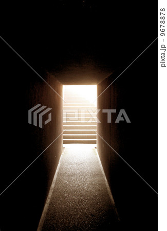 草の生えた階段 最上段に扉が開いた階段 様々な場面で使えるCGイメージ