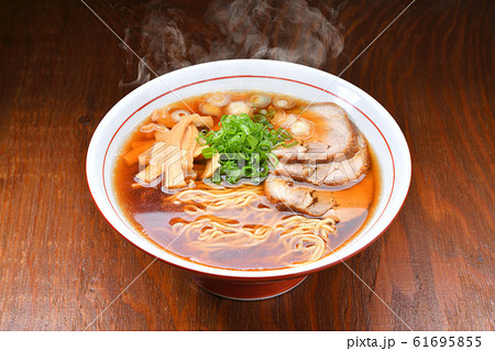 注意)湯気はレタッチ合成です。濃厚醤油スープの昔ながらの中華そば、醤油ラーメン、中華ラーメンのイメー
