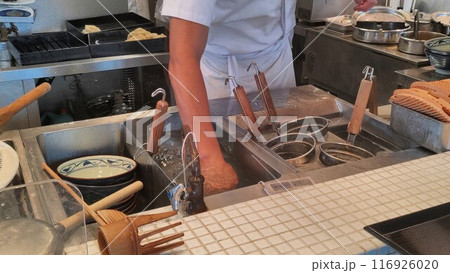 うどんを作る店員 A clerk making udon noodles