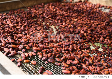 Chocolate sauce, cocoa powder, cocoa beans and cacao fruits