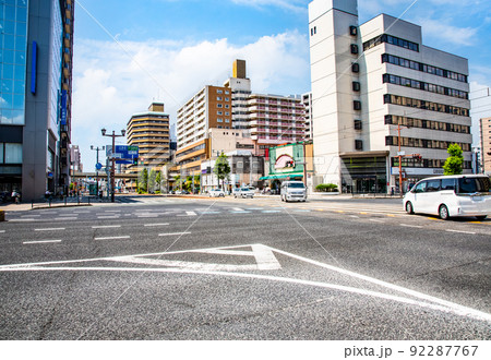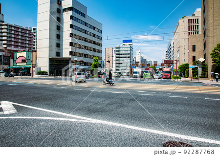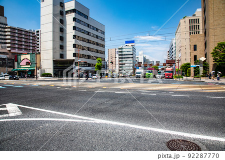 広島市役所前交差点風景です。国道2号線と広電宇品線が交差しています。交通量の多い箇所です。広島県