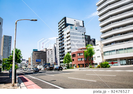 国道2号線の国泰寺町から西方面を展望した風景です。オフィスビルやマンションが林立しています。広島県