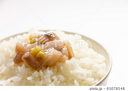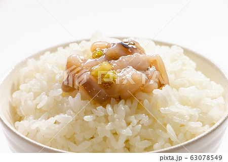 ごはんにのせられたたこわさび。(白バック)