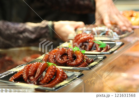 屋台で売られているたこ丸ごと甘露煮
