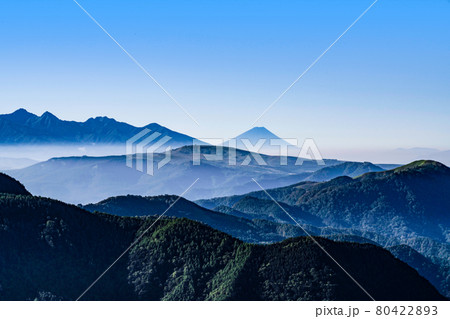 冬の長野県 蓼科山山頂西から南側を見る(八ヶ岳,仙丈ヶ岳,鳳凰山)