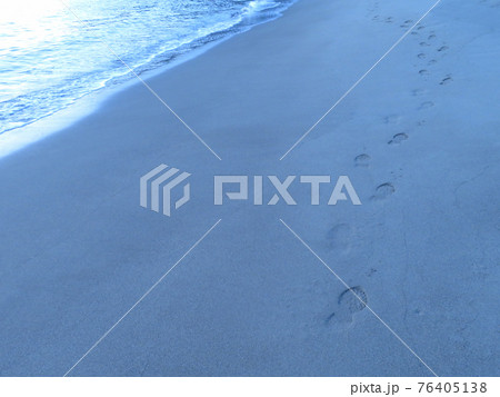 明け方の砂浜に残った足跡