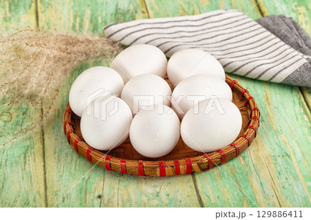 Raw white uncooked chicken eggs