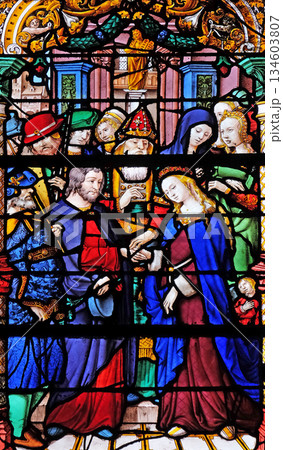 The Wedding of the Virgin, stained glass windows in the Saint Gervais and Saint Protais Church, Paris, France