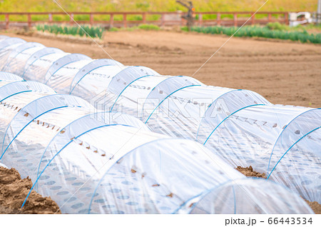 畑に作ったビニールトンネルで野菜栽培