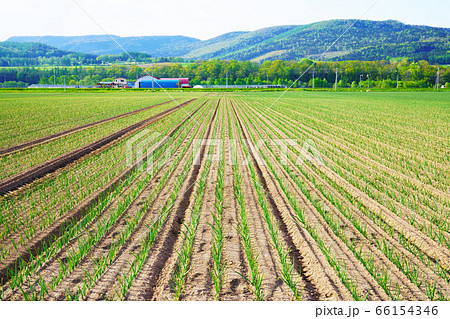 玉葱畑とビニールハウス 北海道