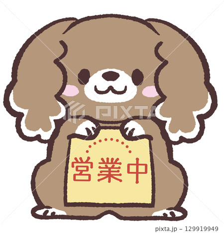 営業中の紙を持つ犬のイラスト