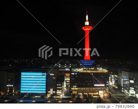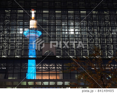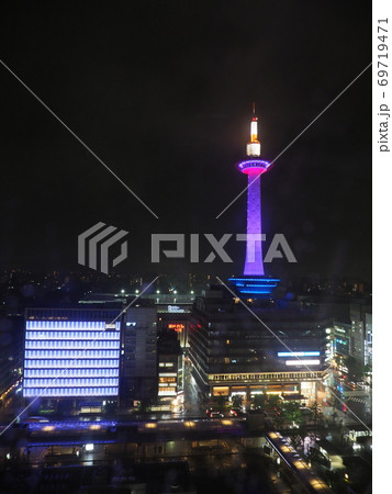 京都市下京区JR京都駅前の京都タワーを撮影したもの