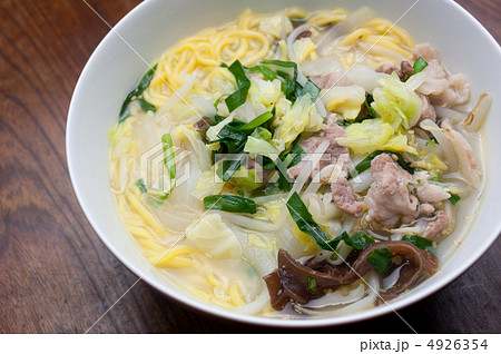 注)湯気は合成です。余りがちな白菜を活用、白菜と豚バラ肉のたんめん、タンメン、