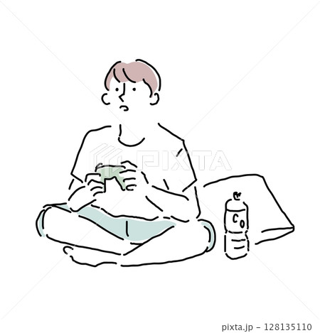 ゲームをする男性の手描きイラスト