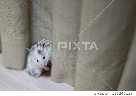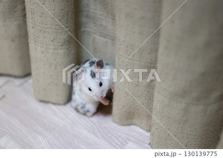 隠れたつもりのゴールデンハムスター(ダルメシアン)