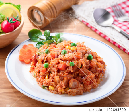 ウインナーと玉葱のチキンライス ( ケチャップライス )