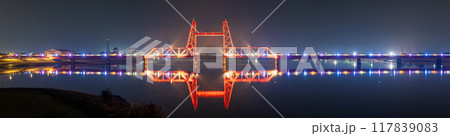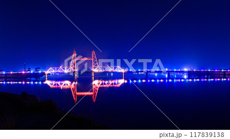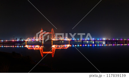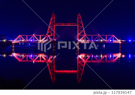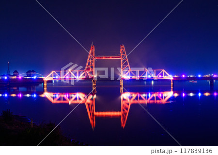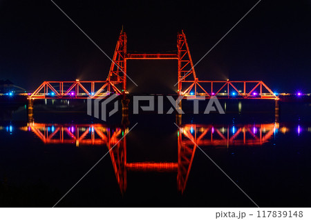 昇開橋ライトアップ風景 筑後川昇開橋(ちくごがわしょうかいきょう)佐賀市諸富「佐賀県と福岡県の県境」