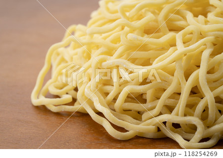 生の中太ちぢれ麺のクローズアップ