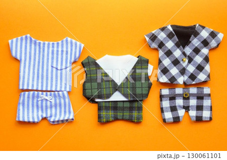 ぬい服 ストライプパジャマ/緑チェックセットアップ/水玉シャツとストライプパンツ