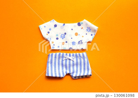 ぬい服 水玉シャツとストライプパンツ