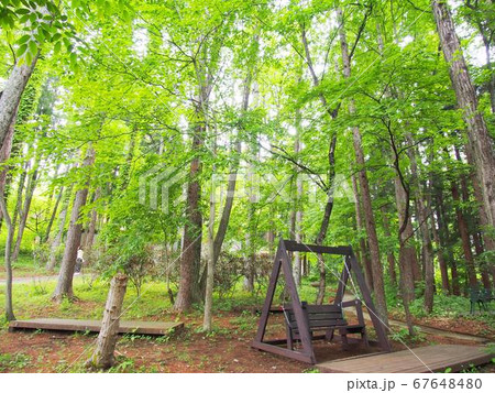 四季の憩いの鶴ヶ島市運動公園の森で二股の木の間から可愛く見つめるチワワの女の子むーちゃん♡