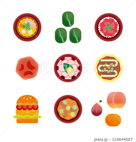麺類の人気メニューイラスト①(そば、うどん、ラーメン、パスタ)