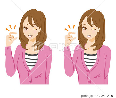 ニットベスト女性がちょっとだけのハンドサインをしているイラスト