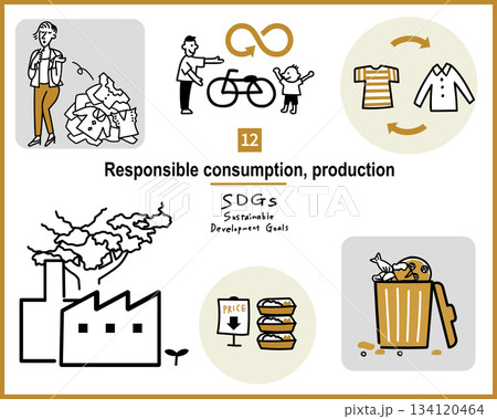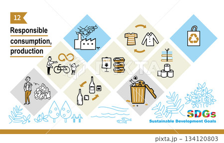 SDGs目標12イメージのメッセージとシンプル線画イラスト