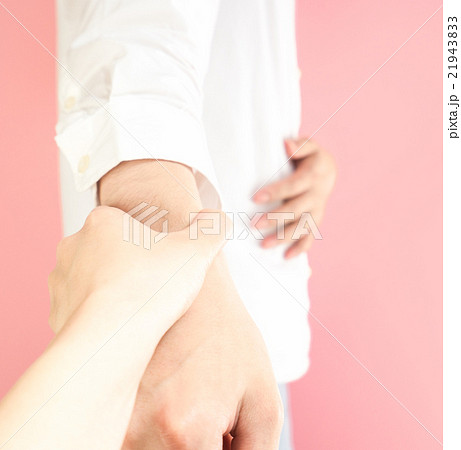 腕を掴まれる男性