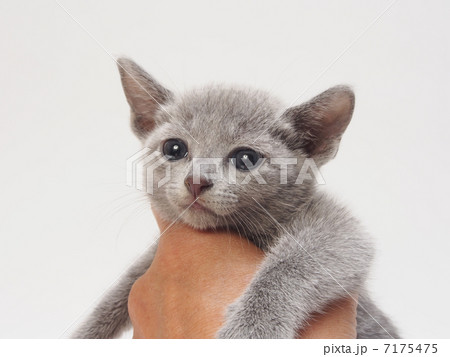 左手でつかまれた子猫