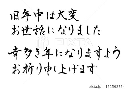新年の締めのあいさつをベクターで描いたシンプルなモノクロの手書き風文字