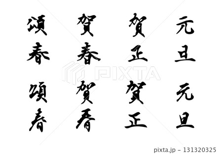 新春を祝う言葉をベクターで描いたシンプルなモノクロの手書き風文字