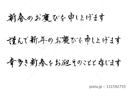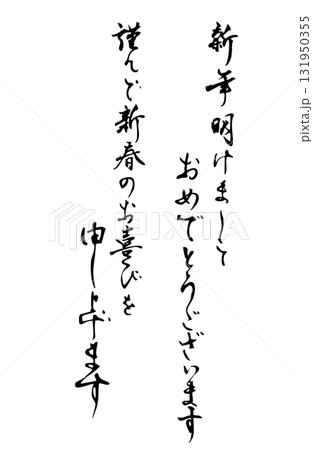 新年の基本のあいさつを縦書きでベクターで描いたシンプルなモノクロの手書き風文字