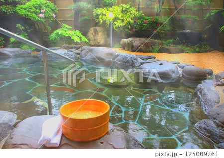 天然温泉の露天風呂(湯けむり・旅イメージ)