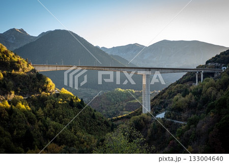 Highway Bridge from Metsovo and Anilio. Red Truck. European route E90