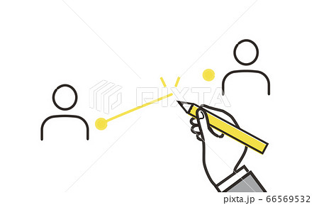 二人の人物の間に線を引く手、マッチングイメージ、シンプルな手書きイラスト