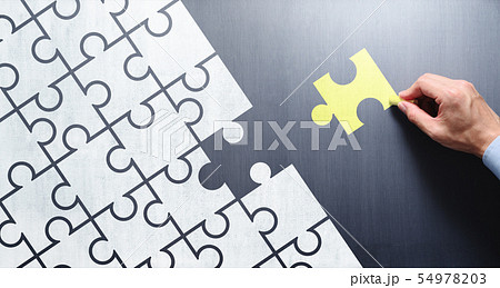 ジグソーパズルを完成させる最後の1ピースをはめる。