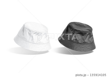 Blank black and white nylon bucket hat mockup png, transparent background, 3d rendering. Empty fullcap hats for hiking or beach mock up, cut out. Clear beanie accessory for fisherman protect template.