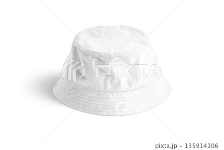 Blank white nylon bucket hat mockup, png, transparent background, 3d rendering. Empty polyester headwear for sun protection mock up, cut out. Clear canvas all-season sunhat or cap for hiking template.
