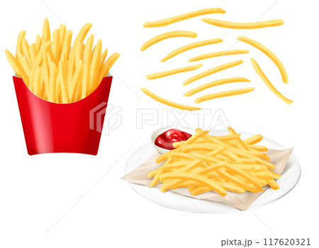 ナチュラルカットの皮付きフライドポテトのセット 料理・食べ物の手描き水彩イラスト素材